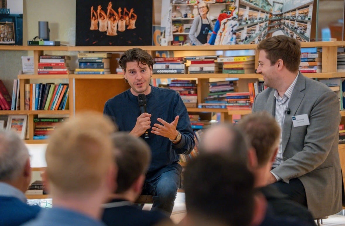 Then on Wednesday, we hosted our first international Upstarts event, with the support of partners LocalGlobe and Milltown Partners. I had a blast chatting with the subject of one of our favorite Upstarts stories so far, Granola co-founder and CEO Chris Pedregal. Then Marker co-founder and CEO Jon Steinback turned the tables on me, asking how we’re building Upstarts and approaching startup storytelling.