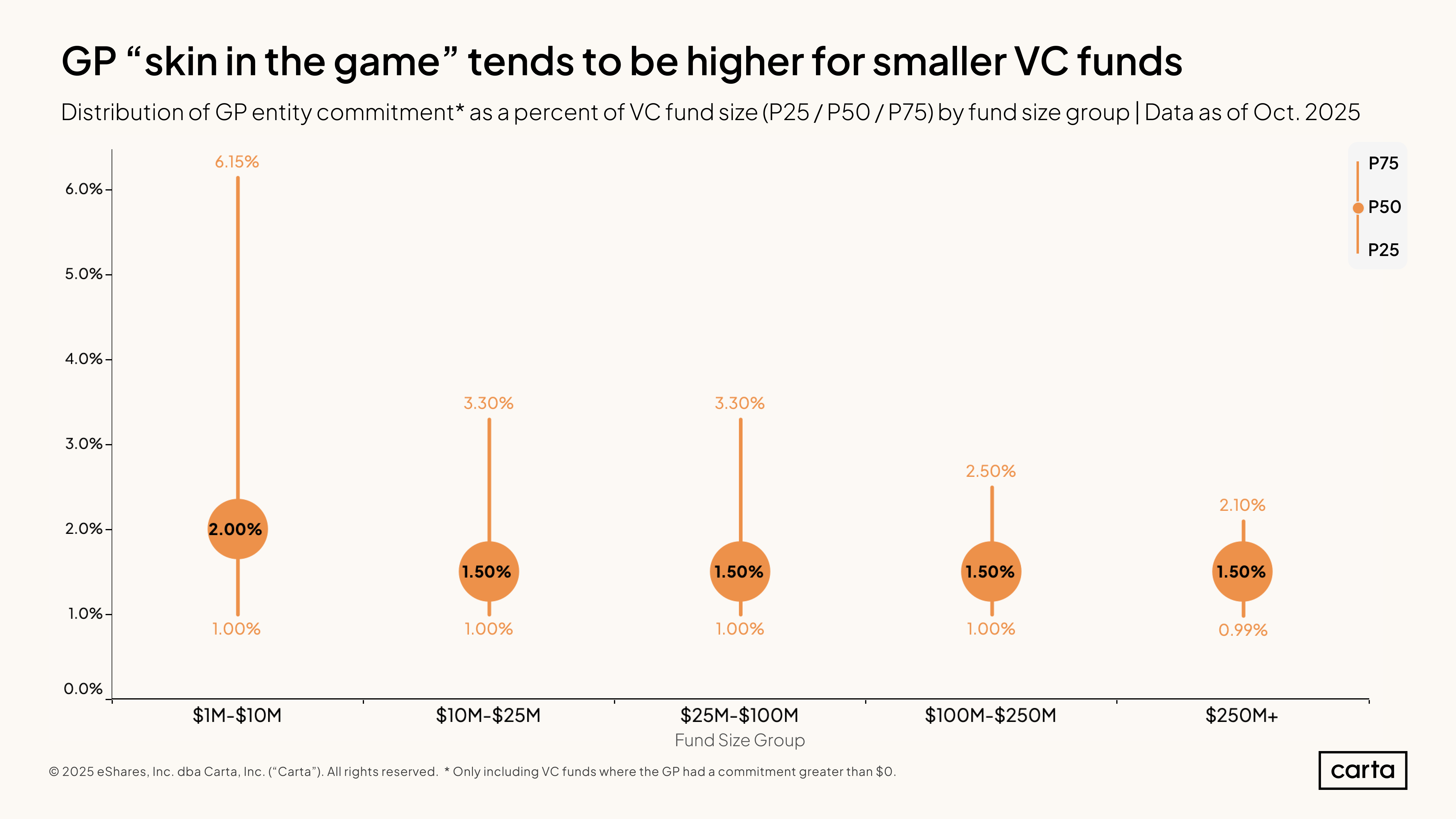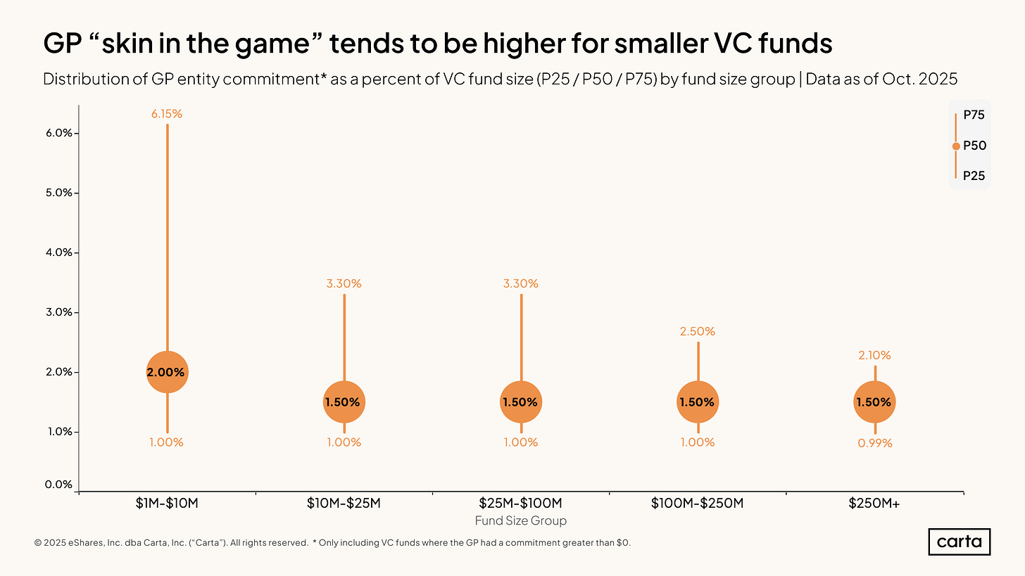 Skin in the game: Private equity managers, while not celebrated for their podcasts and lifestyles like VCs, tend to walk the walk with 50% more personal capital in their funds.