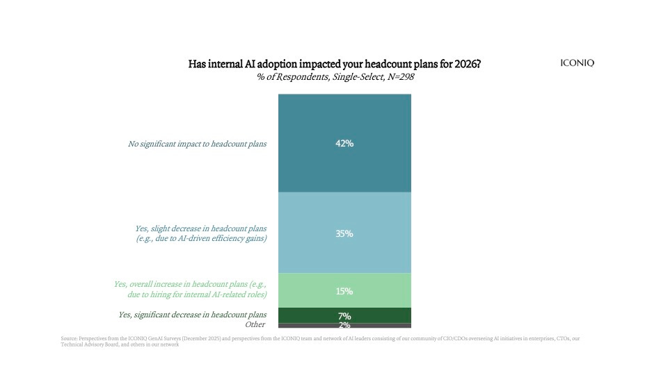 Even if you’re not laying people off, if AI tools are stretching what you can do with a given role — and you’re expecting to hire AI proficient techies for future openings — that’s still a significant impact. Not a layoff or reduction, per se, but perhaps a choice to hire one more full-time engineer or marketer, when previously you’d hire three.