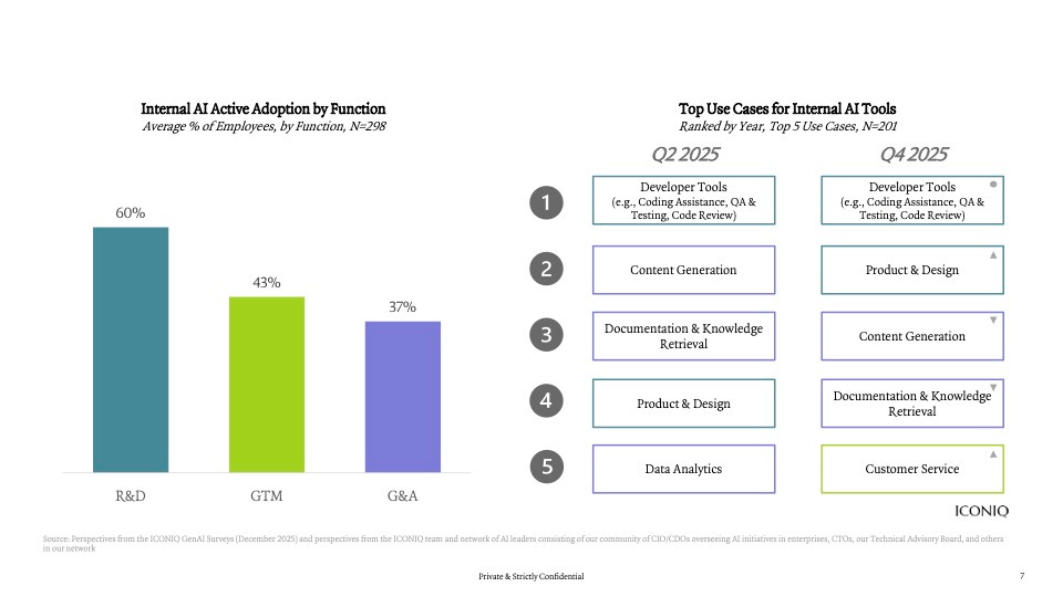 It will surprise no one, nobody at all, that coding and developer-related tools are where companies still see the top use case for AI tools.