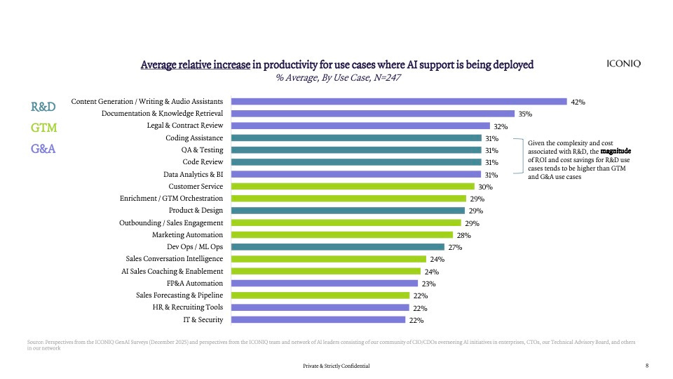 Another wrinkle: coding related use cases were not the places that startups self-reported they were seeing the biggest productivity gains.