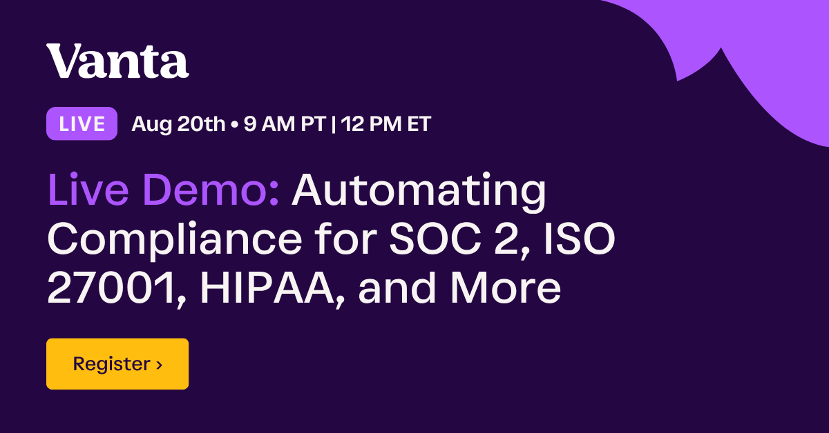Join the live demo on Aug 20 learn how Vanta can help you: