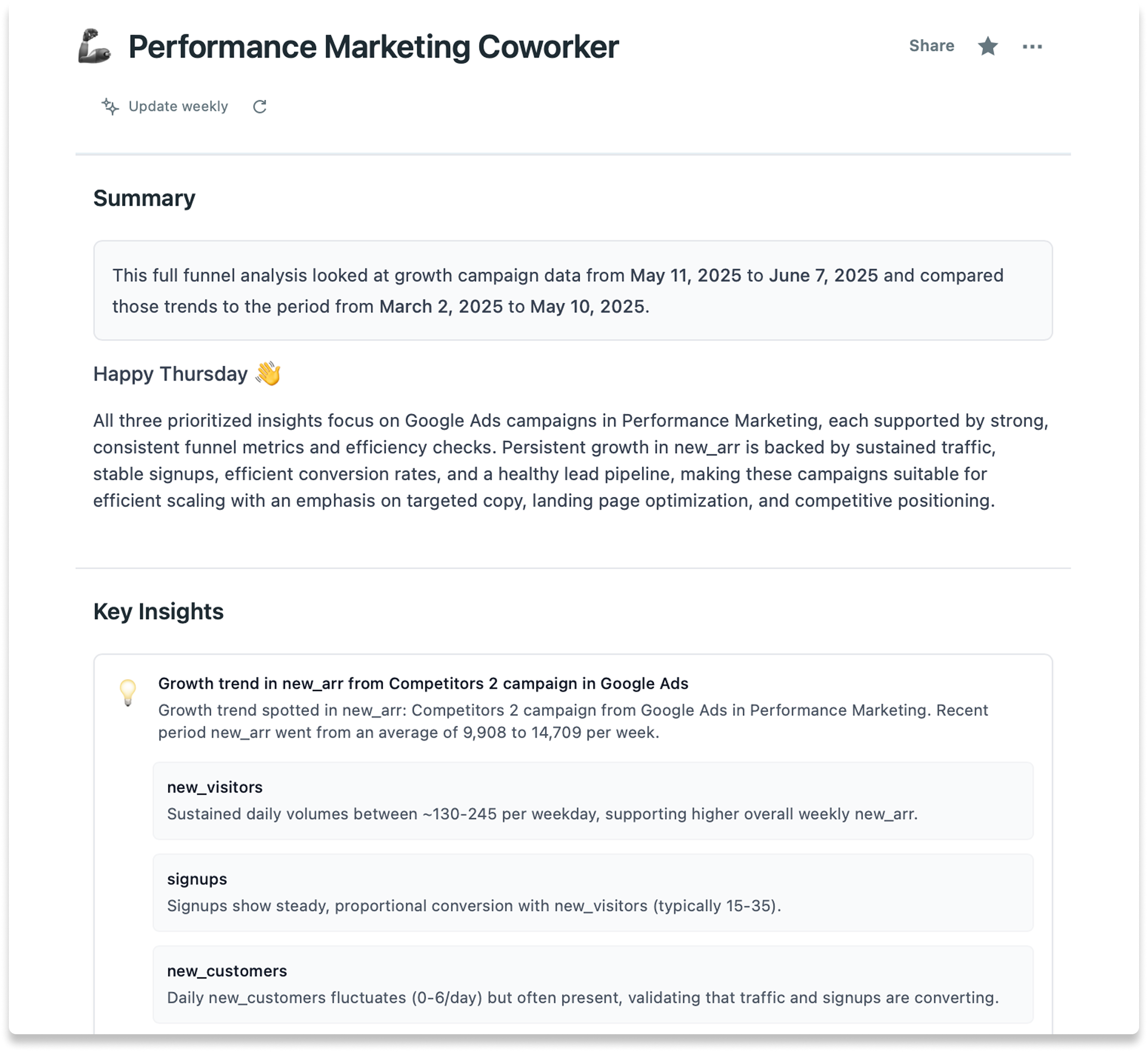 For growth marketers like him and Kisken, toggling between a bunch of tools, like analytics workspace Hex, Google Ads and HubSpot was a daily chore. “It’s not something you can’t build internally. The tools exist; you can go write all this logic,” Dalrymple concedes. “But most people don’t have that time.”