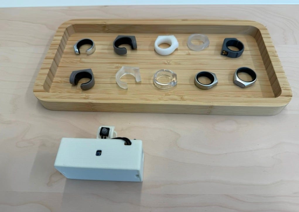 In front of us on the table at Sandbar’s offices lies a procession of past demo rings, ranging from comically clunky plastic to sleeker metal.